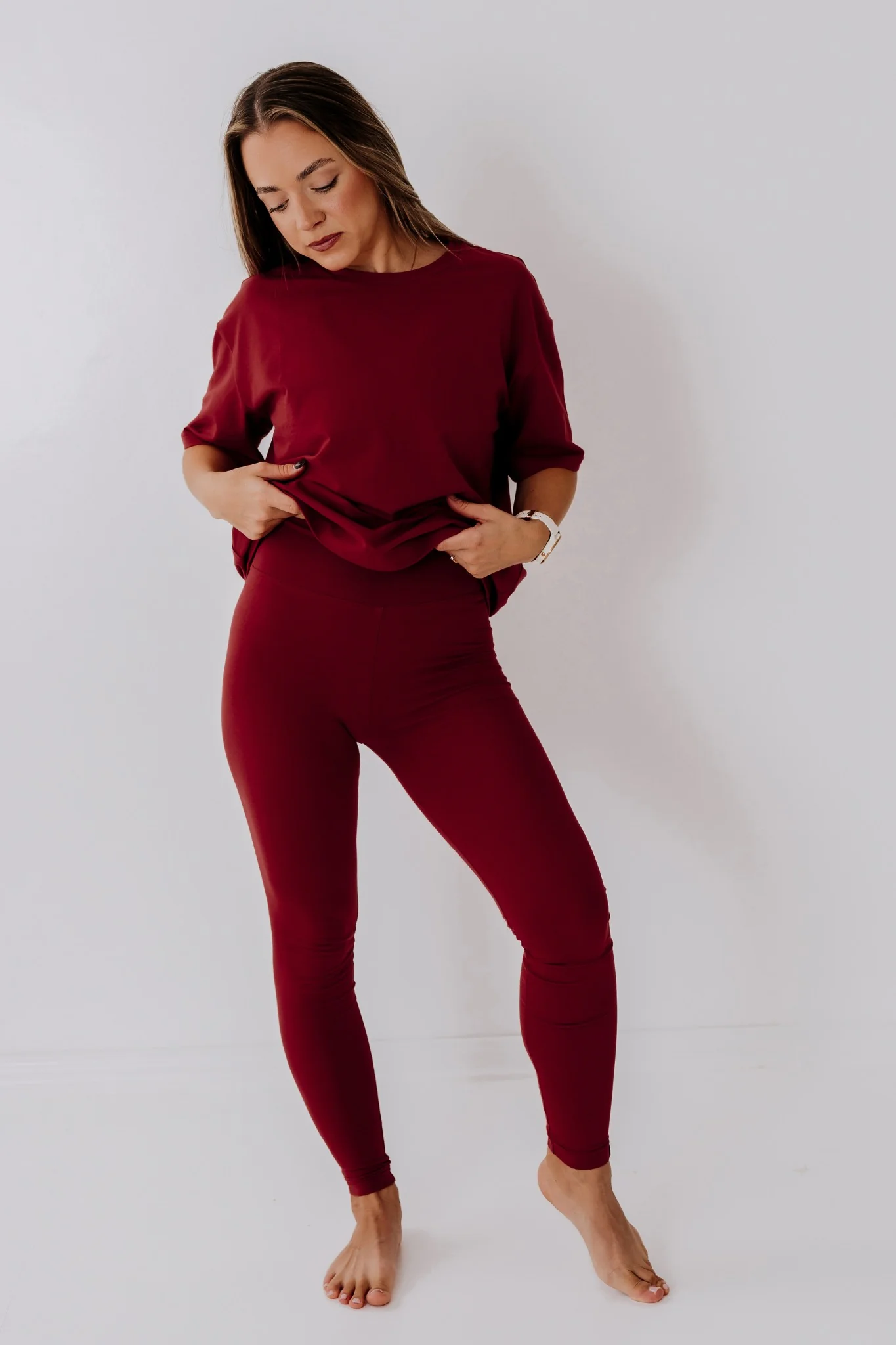 A must-have in a woman's wardrobe - comfortable, soft and stretchy leggings DIANA that keep their shape even after multiple wears. The double-layered waistband comfortably wraps around your waist. The leggings are made of Oeko-Tex® fabric. Suitable for wearing both at home and outdoors, for sports and leisure. Choose a matching DANNA t-shirt and you will feel comfortable, but also feminine.